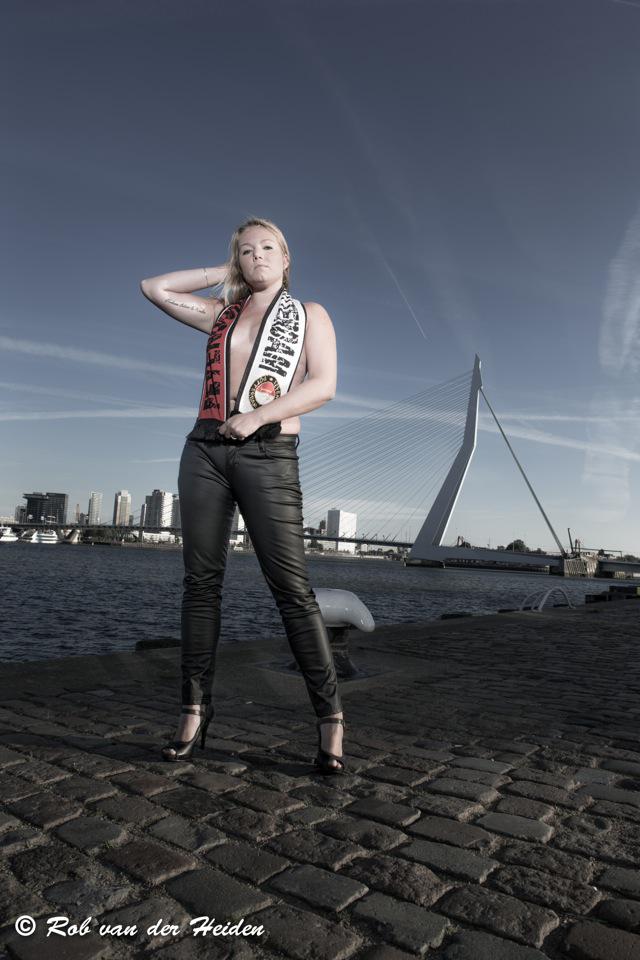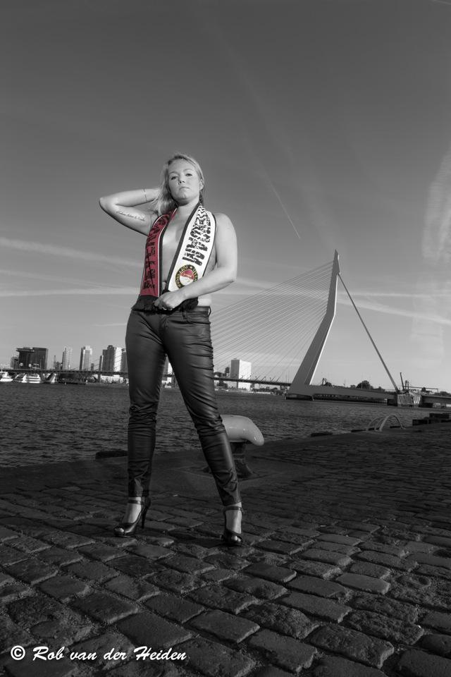 Deze erotische locatieshoot van Senna is gemaakt aan de Holland Amerikakade te Rotterdam. Senna had nog niet eerder geposeerd en wilde haar vriend graag verassen met een leuke foto met de skyline van Rotterdam op de achtergrond. Het was op de vroege zondagochtend van de fotoshoot erg koud en winderig op de Kop van Zuid. Senna poseerde in de categorie bedekt naakt. Op deze manier topless poseren als je nog nooit eerder hebt geposeerd is erg gedurfd van Senna.